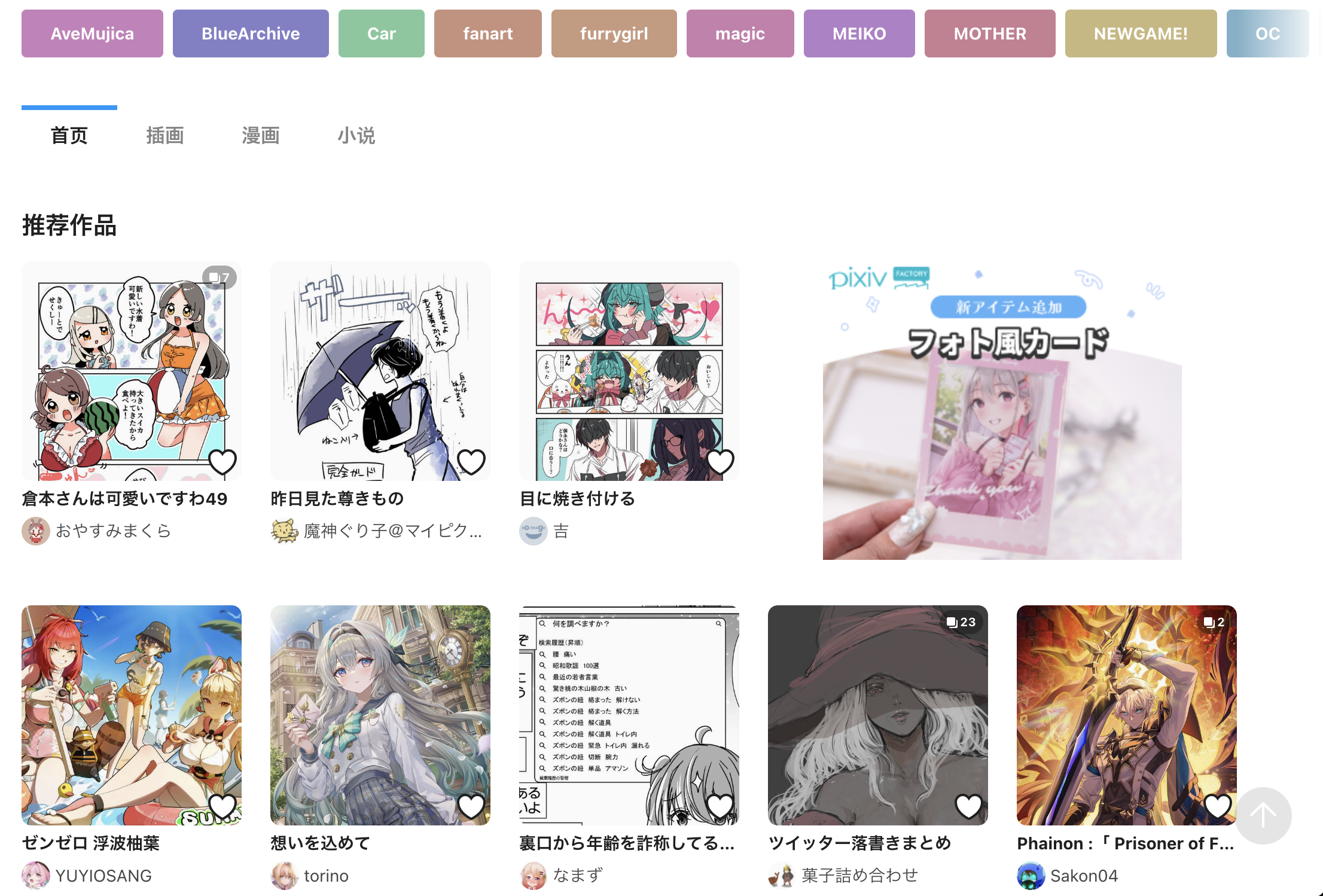 Pixiv拥有超过5000万份的插画・漫画・小说!随时可能邂逅你喜欢的作品。pixiv是以让绘画创作变得更加有趣"为目标的网络服务。 不仅有喜欢漫画或者动画的用户,还有有各种各样的作品被投稿。